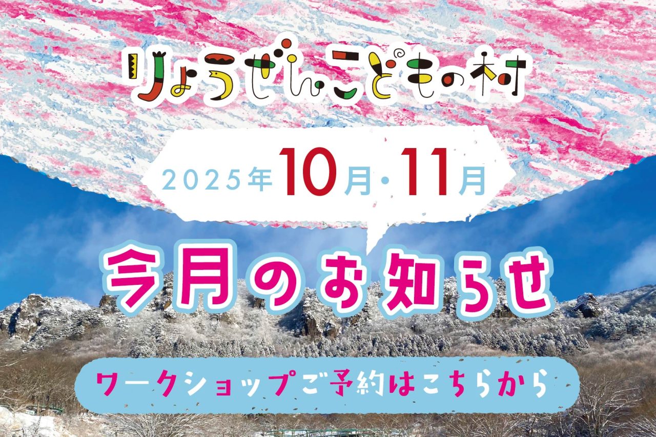 2025年11月・12月のこどもの村チラシ及び、有料遊具など各種お知らせです。ワークショップやイベントについてぜひご一覧ください。
